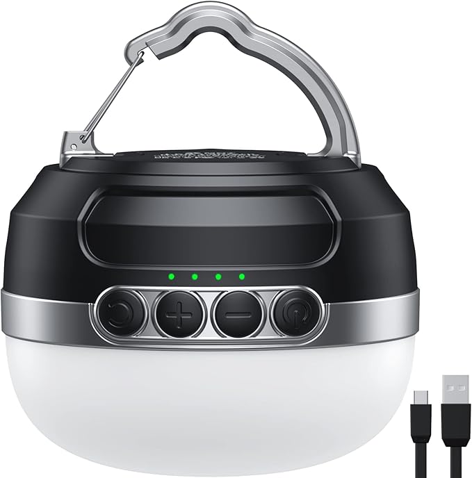 - A 10400mAh Power Bank: Last up to 420 hours after a full charge (at the lowest brightness ) , equiped with a 10400mAh battery, this camping light will charge your phone during your camping/hiking. It's also a nice choice to place it in your bedroom in case of hurricanes or power outages.