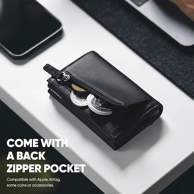 VULKIT Pop up Wallet Minimalist Cash Wallets RFID Blocking Leather Smart Credit Card Holder with Magnetic Closure for Men