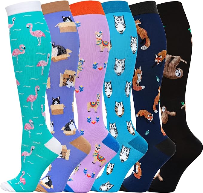 - COMPRESSION SOCKS 20-30 mmHg. A Durable Compression Socks have wide variety of fun colors and designs specially for nurses, size rang cover both women and men. Double stitched with functional Fabric and knitted with seamless compression technology. Fits comfortable, easy to get on and delivers 360° support to feet and legs. Knee high long sleeves compression socks make sure the graduated support effect entire calf.