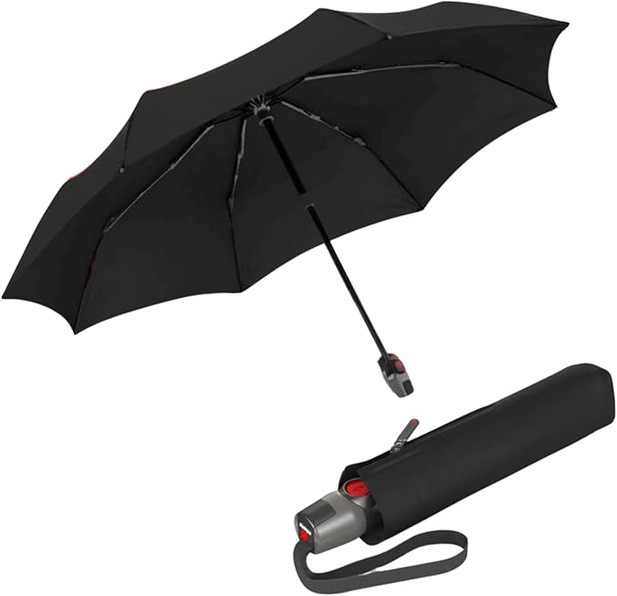 Knirps T.200 Duomatic Compact Rain Umbrella in Black– Wind Tunnel Tested to 93 mph, Aluminum Steel Fiberglass Frame, 38in Canopy, OEKO-TEX, High-Performance Automatic Travel Umbrellas