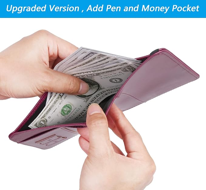 - 【UPGRADED VERSION / ADD MONEY POCKET AND PEN】 - Compared with most passport holder on the market, our passport holders has an extra money pocket and a metal pen. So as long as you bring our passport wallet, you don’t need to bring another wallet.