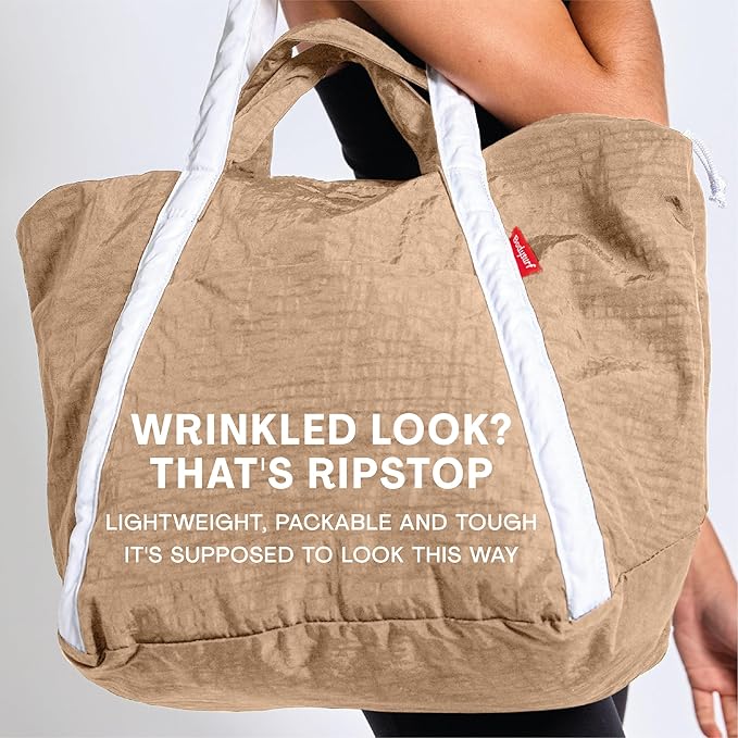 - SUSTAINABLY + DURABLY MADE: Made 100% post-consumer ripstop nylon, this beach tote bag keeps your essentials dry from splashes and free from sand while embracing sustainability