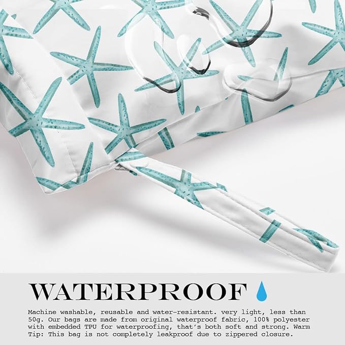 2 Pcs Wet Bag, Wet Dry Bag, Wet Bag for Swimsuit, Travel, Beach, Pool, Stroller, Diapers, Dirty Yoga Gym Clothes, Toiletries, Makeup Bag, Beach Bag Ocean Starfish Anchor Décor Birthday Gift for Women.