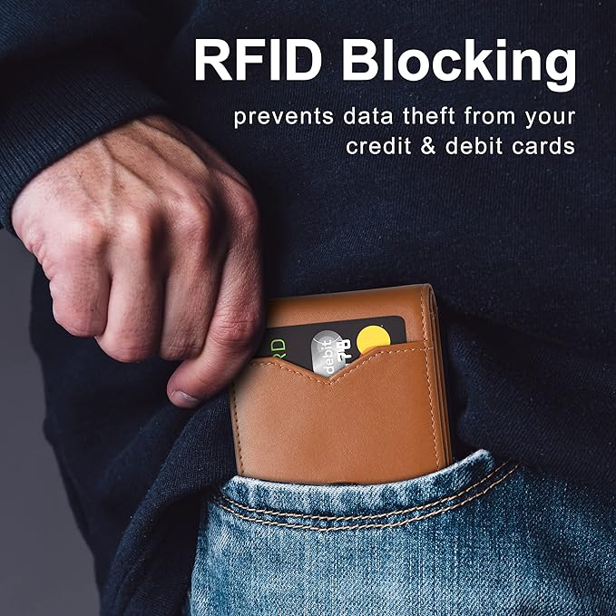 - Rfid Blocking: Our wallets are equipped with German Instiute Certified RFID Security technology, a unique metal composite, engineered specifically to block 13.56 MHz or higher RFID signals to protect the valuable information and privac.