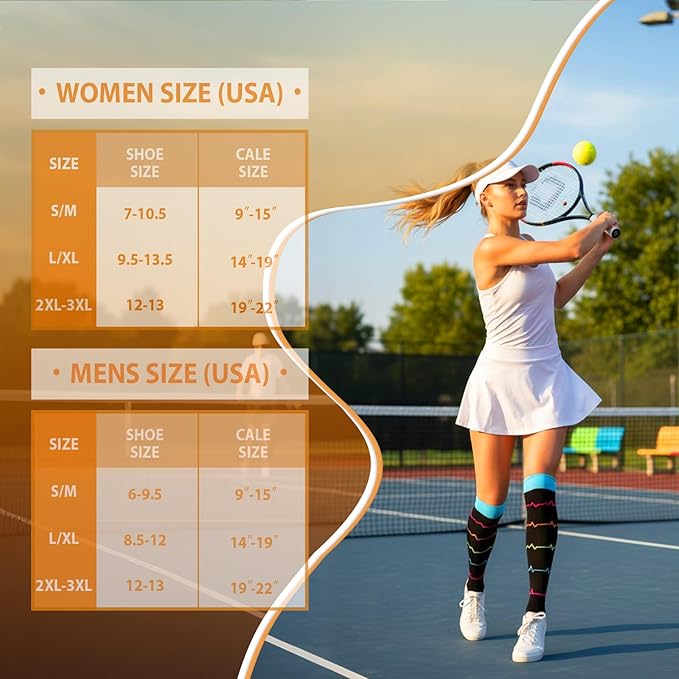 - ✅BEST COMPRESSION SOCKS FOR WOMEN & MEN – An Excellent compression hose, very durable, with a fashionable look. Washable & designed with Quality Lycra Fabric, built for durability. Customers agree, the comfort is amazing. Your durable sleeves work with your routine. It is great gift to joggers, athletes, workout fanatics, office workers,parent or grandparent, runners, nurses and doctors.