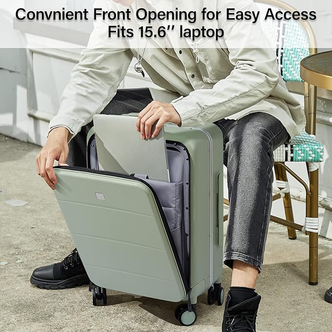 - FRONT OPENING: MILADA airline approved carry on luggage 22x14x9 with front laptop compartment for quickly accessing electronics, like 15.6'' laptop, iPad, folder and more urgent items. The aluminum frame make the suitcase sturdier (front access only). 20 inch suitcase carry on with front laptop pocket is 13.81×9.25×21.46in, 7.93Ibs, 40.4L capacity. Internal dimensions: 12.6*8.3*15.3".