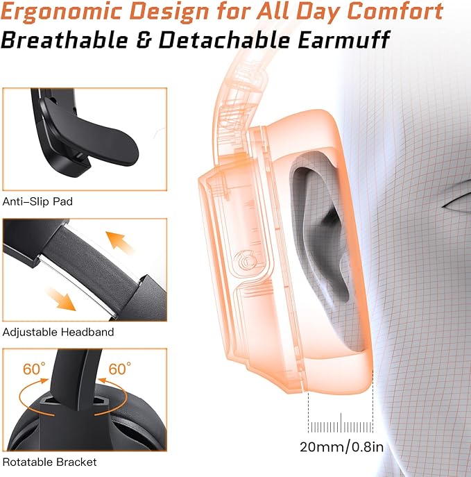 - 【EKSAtelecom CloudSoft Ear Cushions & 24-Month Support】Slip into over-the-ear comfort with soft, breathable, and gentle CloudSoft Ear Cushions. This ergonomic design of trucker headset keeps pressure off your head, preventing soreness or fatigue over time. You can relax in comfort and stay fully productive all day when you use our bluetooth headset with microphone. If you encounter any problems, please kindly contact our professional customer service team.