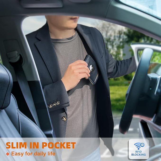 KS Mens Wallet Gift Airtag or Standard Use,Slim Front Pocket Leather Wallet Money Clip 11 cards RFID Blocking
