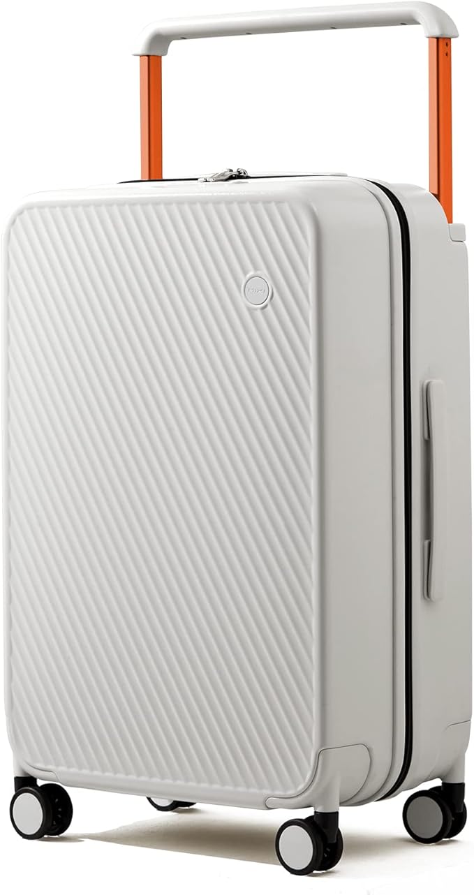 mixi Carry On Luggage Airline Approved 20'' Lightweight Luggage Wide Handle PC Hardshell Suitcases with Spinner Wheels & TSA Lock, Smoke White