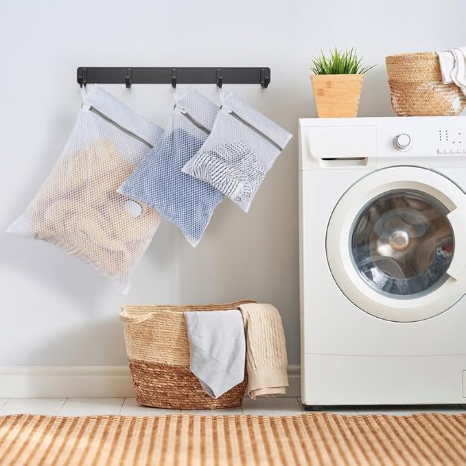 - 【Warm tips】 About 70% of the delicates laundry bag should be filled with clothes. Do not load the washing machine too full, it has a better decontamination ability when it is filled with 70% clothes. Please do not pull the zipper on the mesh laundry bags to the end to prevent the zipper from falling off.