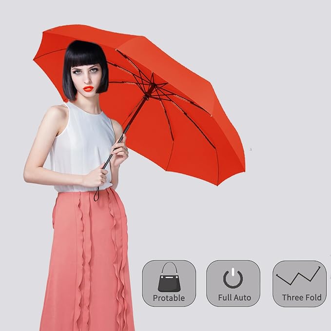 - Fully Automatic Umbrella- Easy one hand operation with one auto open & close button, simply touch it to expand or collapse;