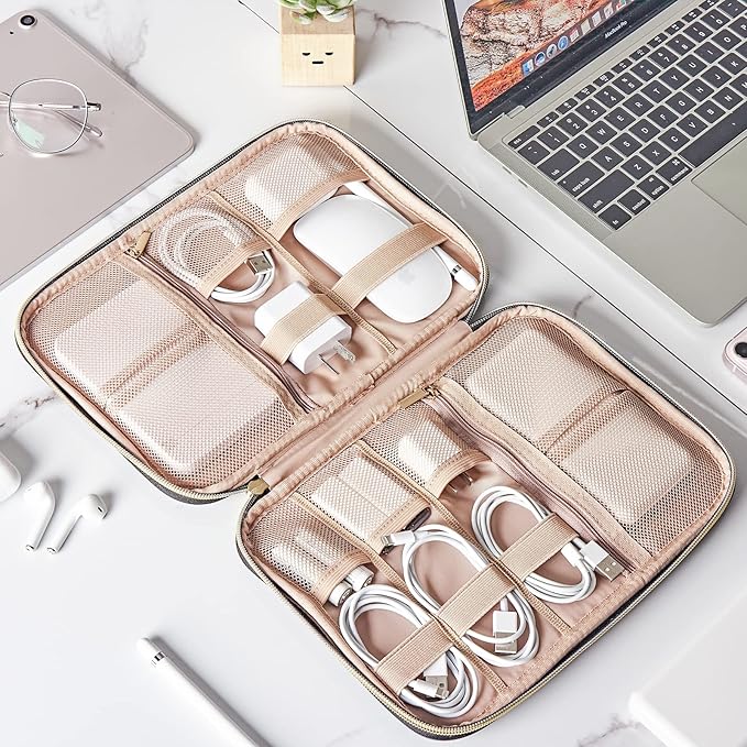 - LARGE CAPACITY-10.5×7.5×1.5inches(L×W×H); Spacious room for 4 cables, 1 mouse, 2 power bank(or potable hard drives, cables), 2 SD cards, 3 batteries, 2 USB drives and 1 charger
