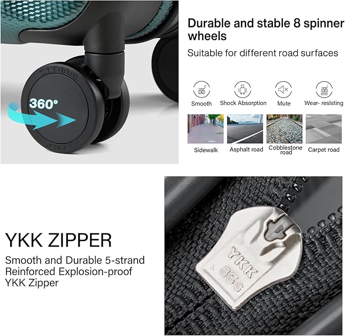 - 【High Quality Accessories】This is a travel luggage with wheels using SJ TOBOL brand wheels, it's very quiet and easy to operate, and can be easily used on cobblestone roads. The carry-on luggage with Smooth and reinforced explosion-proof YKK zipper reverse coil prevents burst zipper.This is also a Tsa luggage,so safe and convenient,the telescopic handle with multi-steps adjustment.
