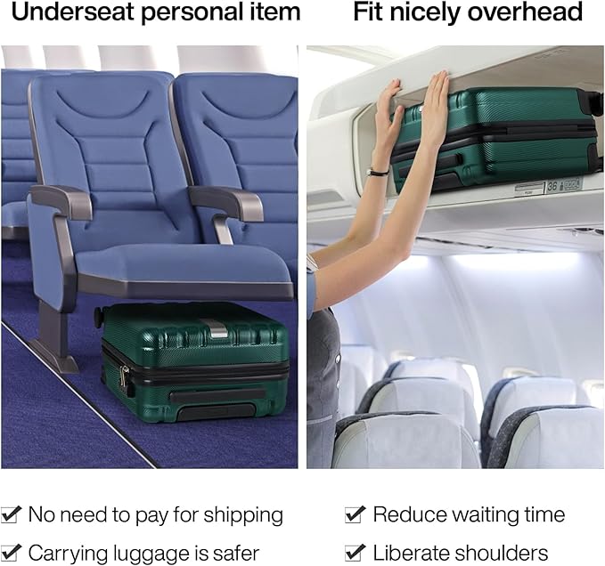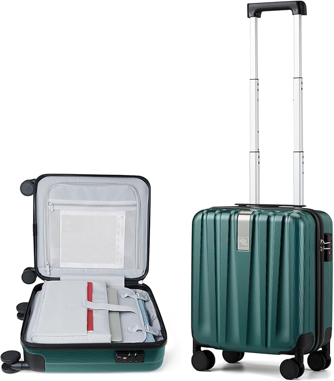 Hanke 16 Inch Underseat Carry on Luggage with Wheels,Small Hard Shell Suitcases for Weekender,Tsa Approved Lightweight Travel Luggage Suitcase for Womem Men,Blackish Green.