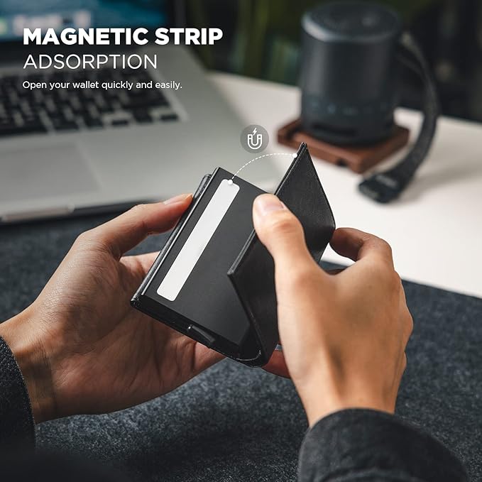- Smart Wallet for Men - Slide the lever to pop out the cards smoothly and orderly, enabling you to easily access any of the cards. A pocket-size wallet is suitable for put in a front pocket or anything backpack.
