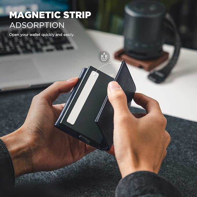 - Smart Wallet for Men - Slide the lever to pop out the cards smoothly and orderly, enabling you to easily access any of the cards. A pocket-size wallet is suitable for put in a front pocket or anything backpack.