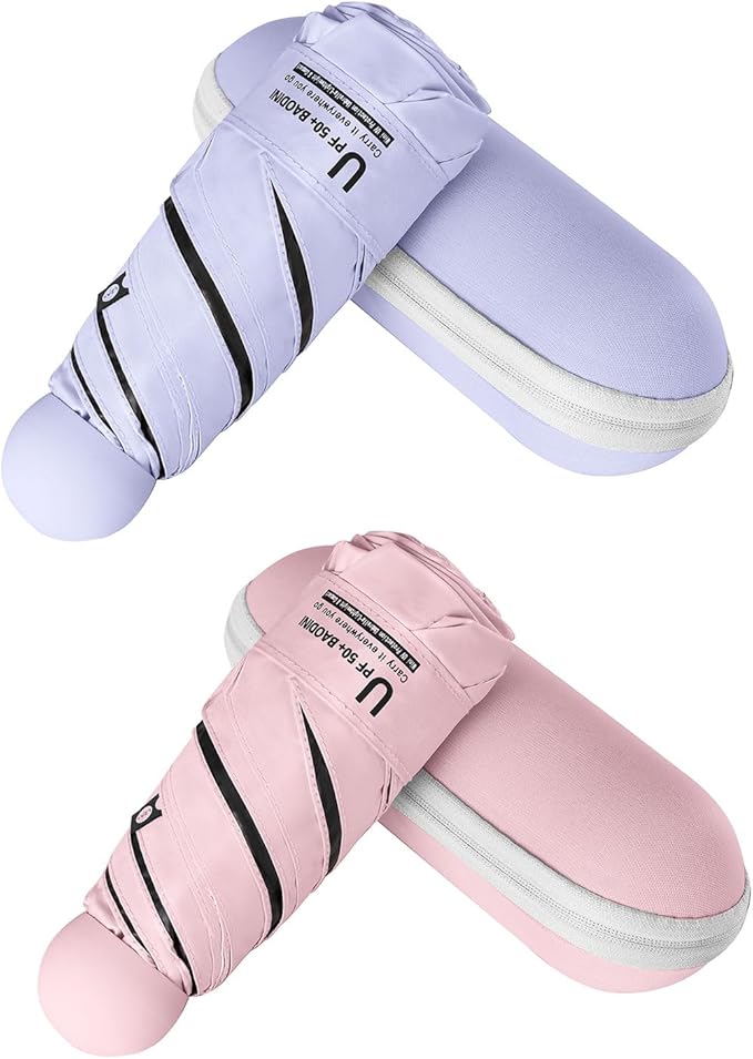 BAODINI Travel Essentials Mini Umbrella for Purse With Case Small Compact UV Sun Protection Lightweight Tiny Pocket Manual Open Close Umbrella for Women Kids and Men Fit Purse Backpack