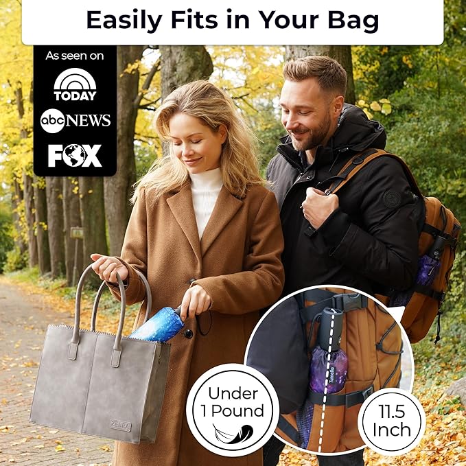- LIGHTWEIGHT, EASY ONE-HANDED USE, SMALL & PORTABLE: Take this compact umbrella for travel with you wherever you go. So versatile and simple to use, with just the touch of a button, you can automatically open or close your Tumella. It fits perfectly in your backpack, purse, or car door, with just 11 by 2.75 inches in size, weights less than 1 lb, while offering a huge coverage of 42 inch.