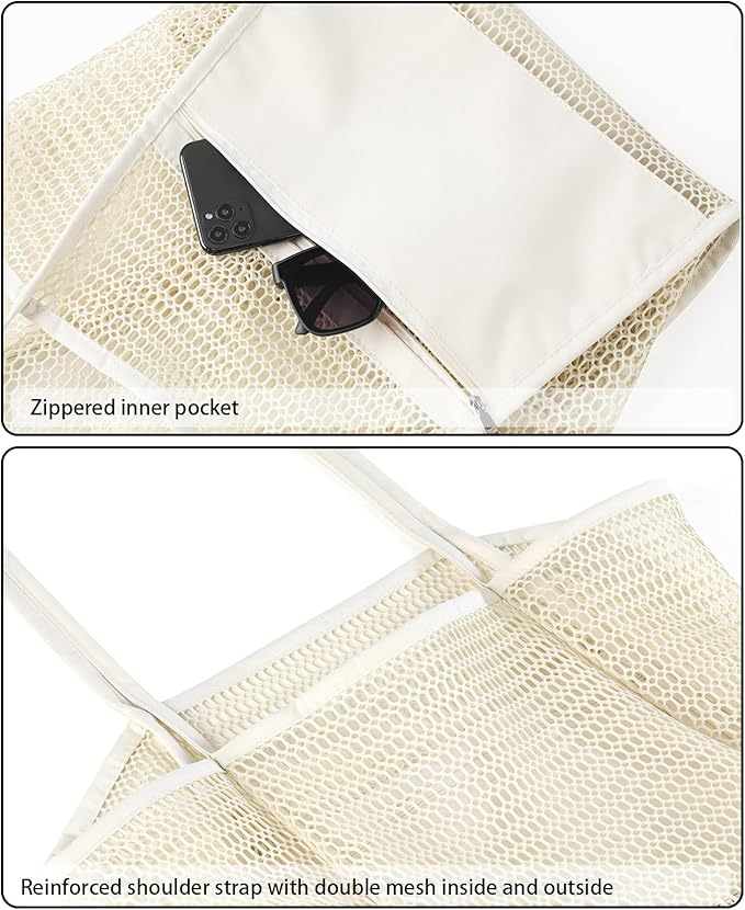 Iioscre Mesh Beach Tote Bags for Womens, Causal Hobo Pool Bags for Swimming Pools Vacations Beach Essentials