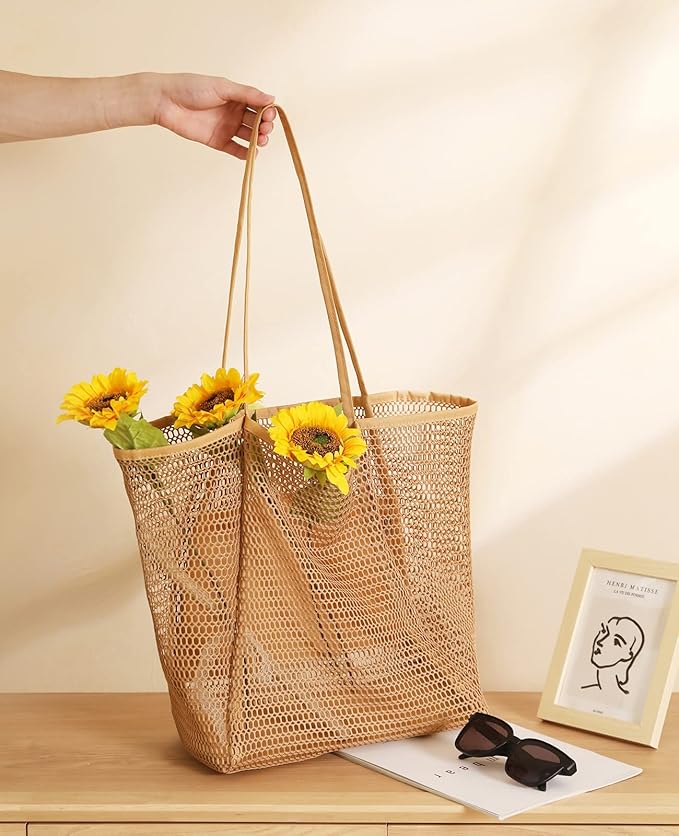 Iioscre Mesh Beach Tote Bags for Womens, Causal Hobo Pool Bags for Swimming Pools Vacations Beach Essentials