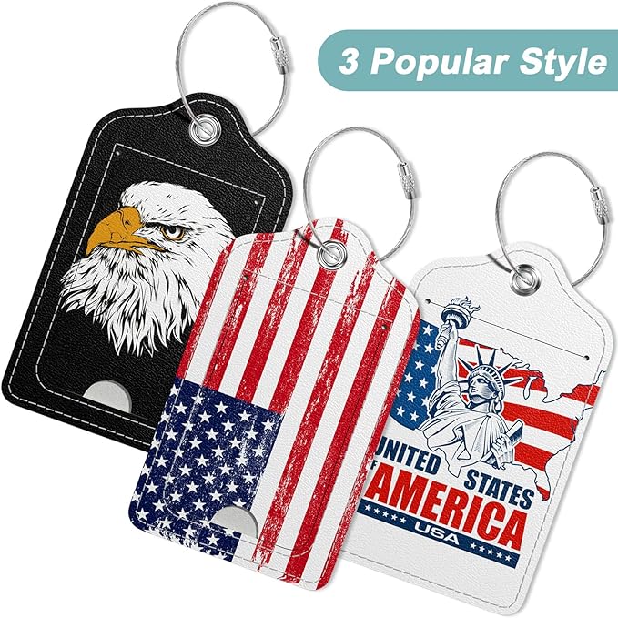 Rimilak 3 Pcs PU Leather Luggage Tags for Suitcase, Travel Cruise Luggage Tag with Privacy Flap, Name ID Label and Metal Loop for Women Men Baggage Handbag School Bag Backpack, USA