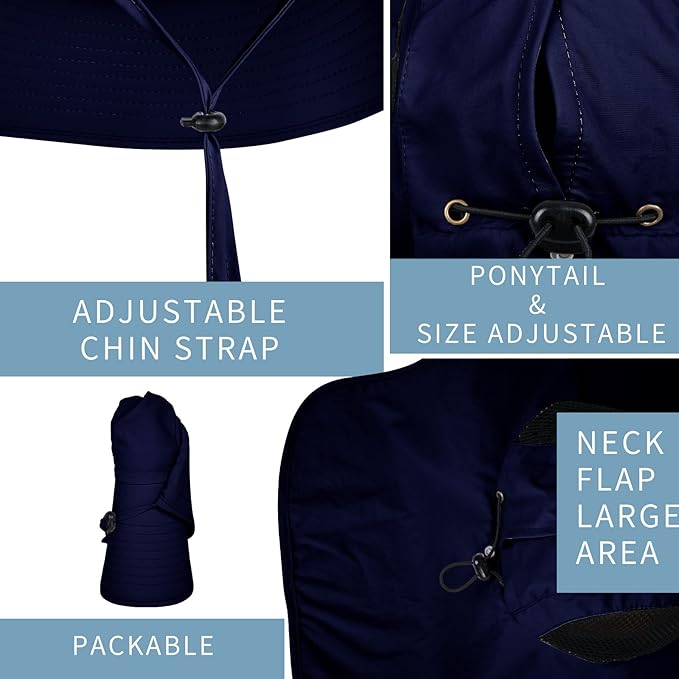 - PERFECT SUN PROTECTION FOR HEAD AND NECK – The outdoor hat has a large wide brim and neck flap to protect you from the blazing sun at all angles. The hat is rated for 50+ UPF to protect against harmful UVA and UVB rays, offering complete UV protection for your face, ears, and neck.