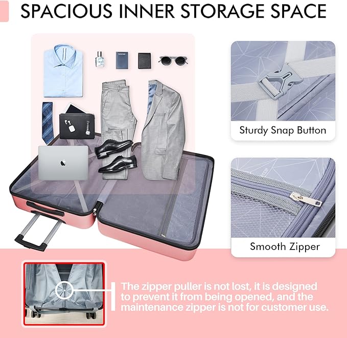 - [Larger storage space] We have adopted a more scientific structure design to maximize the use space in the box, and reasonable internal partitions make your luggage more tidy and can accommodate more.