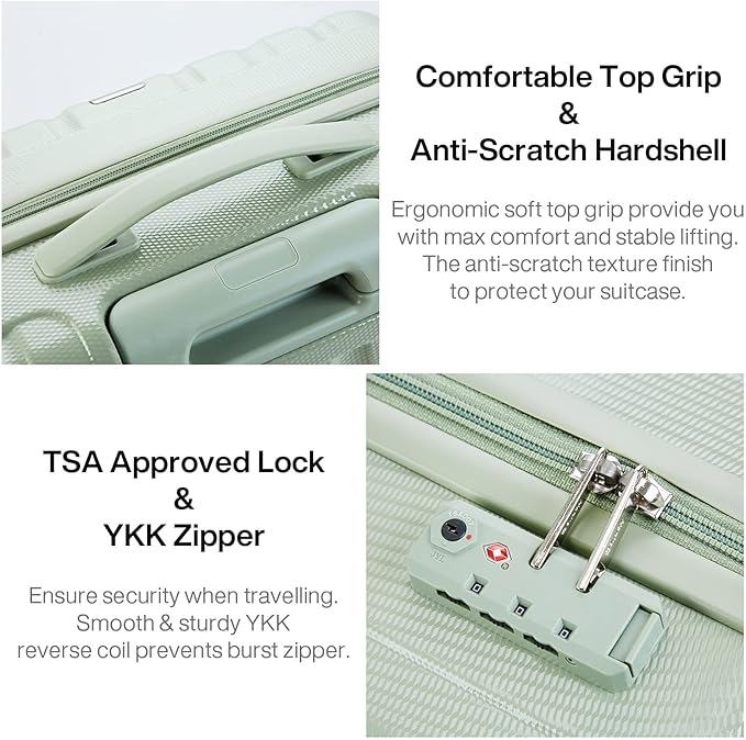 - 【Better Material】OEKO-TEX@ Comfortable lining,Close fitting clothes can also be safely stored. And it get benifits from PC hard shell that designed with 3-layer micro-diamond textured surface make it solid and anti-scratch,keeping cases beautiful trip after trip.