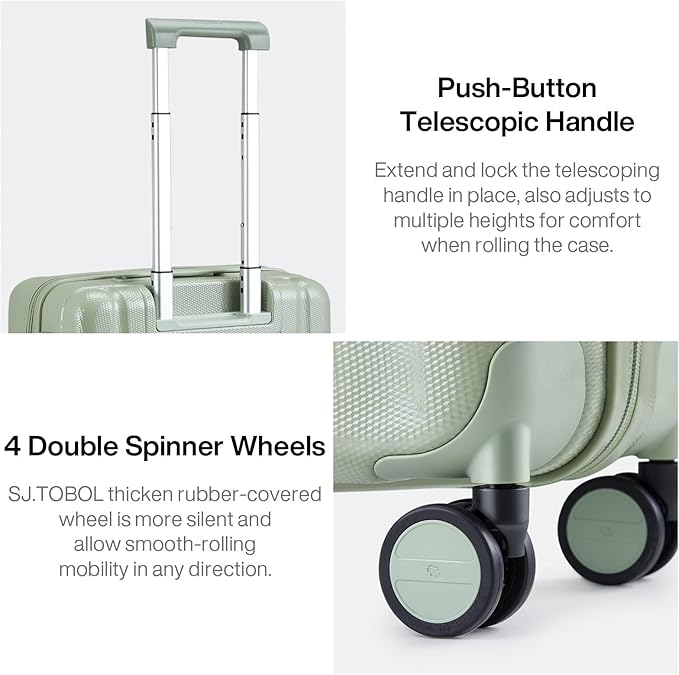 - 【High Quality Accessories】SJ . TOBOL durable spinner wheels,It is composed of precision shaft center and thickened TPE wheel skin, which is very wear-resistant,quieter and has strong bearing capacity, It is applicable to different roads such as cobblestone road and carpet road. Smooth and durable 5-strand reinforced explosion-proof zipper reverse coil prevents burst zipper. Travel-approved combination lock is safe and convenient. Ergonomics telescopic handle with multi-steps adjustment.