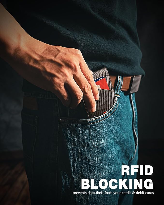 - Slim Wallet for Men - This minimalist wallet is just 1/2 inch thick, measuring 4.4" x 3.1". It features a money clip and 11 card slots, holding up to 12 cards. Designed to fit perfectly in your pocket, it offers a large capacity in a slim profile for everyday carry