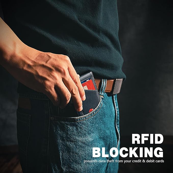 - Slim Wallet for Men - This minimalist wallet is just 1/2 inch thick, measuring 4.4" x 3.1". It features a money clip and 11 card slots, holding up to 12 cards. Designed to fit perfectly in your pocket, it offers a large capacity in a slim profile for everyday carry