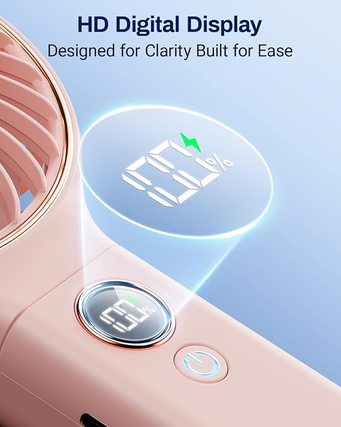 - LED Display & 6 Speeds: LED display for real-time gear and remaining power display. Hand-held mini fan with 6 adjustable gears, wind speed is gradually increased from 1 to 6 to meet various usage scenarios, stay cool anywhere