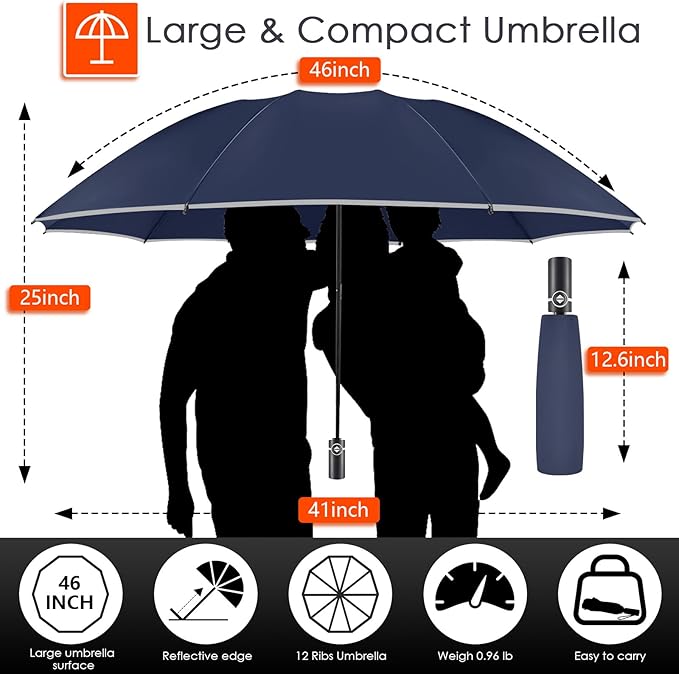 - ☂【Extremely Convenient】Our reverse folding umbrella has a fully automatic system, perfect for one-handed operation. Open or close the umbrella with the push of a button. It is easy to carry without taking up much space and stores in your car, briefcases, backpacks, travel bags, etc... Suitable for women and men, suitable for travel and outdoor activities.