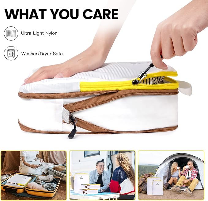 - 【Suitable For Occasion】 Compressible packing cubes Ideal for family vacations, business trips, outdoor camping, and daily storage. Our brand believes in Let you pack and travel easily.