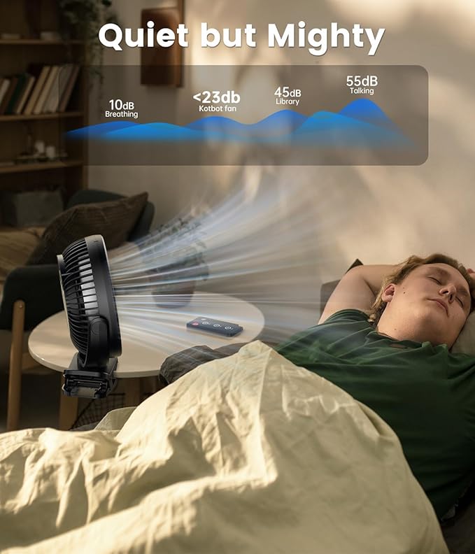 - 3.Quiet Operation: With a working volume of less than 23 decibels, this fan operates quietly, making it perfect for use in a bedroom, library, or office. Its low noise output ensures that it won't distract you or your coworkers, making it perfect for use as a USB fan or clip-on fan