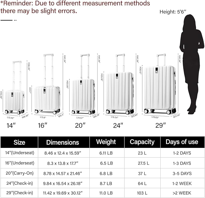 - 【Better Material】OEKO-TEX@ Comfortable lining,Close fitting clothes can also be safely stored. And it get benifits from PC hard shell that designed with 3-layer micro-diamond textured surface make it solid and anti-scratch,keeping cases beautiful trip after trip.