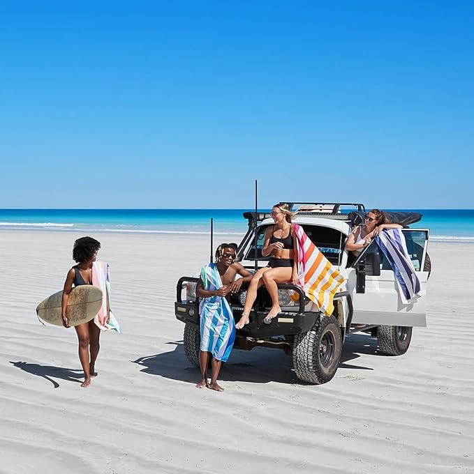 - QUICK DRYING & SUPER ABSORBENT - The fibres will soak up all water and moisture off of you in no time leaving you dry and ready to go. Our beach towel dries 3x faster than standard cotton towels and will keep free of unpleasant damp smells