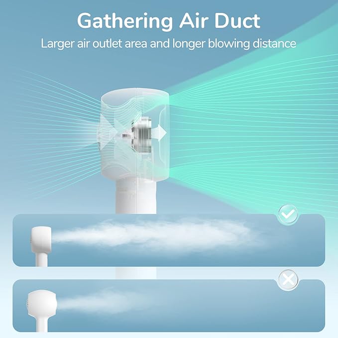 - Upgraded Turbo Engine: Aircraft engine turbine technology to provide super power. The air volume of the handheld fan is 30% higher than that of ordinary fans. The speed is as high as 9000r/min. The 7 wedge-shaped fan blades absorb wind force, and the wind force is increased by 3 times through the air duct