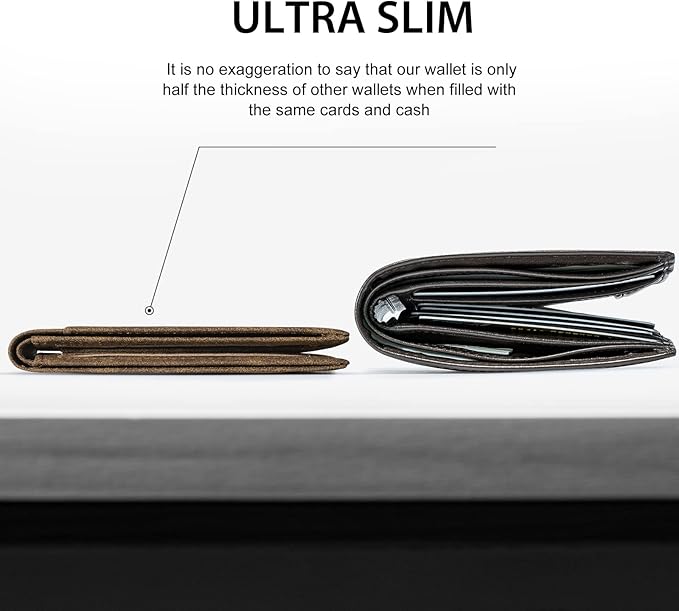- Ultra-thin: This wallet measures 4.3 x 3 x 0.5 inches and can hold at least 11 cards and 15-20 bills. Even when it's packed full, it's only 0.8 inches thick,It can perfectly conceal itself in your pocket without any noticeable bulge.