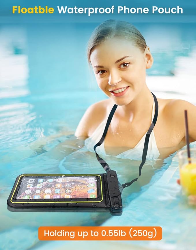 - 【Beach Essentials】- Vacation beach accessories: 2 pack floating waterproof phone case dry bag, suitable for most smartphones with 6.8-inch screens (some large-screen phones suggest removing the phone case). The phone waterproof bag is suitable for swimming pool, beach, fishing, swimming, sailing, skiing, boating, kayaking, snorkeling, tubing, rafting, shower, sauna and other water park activities