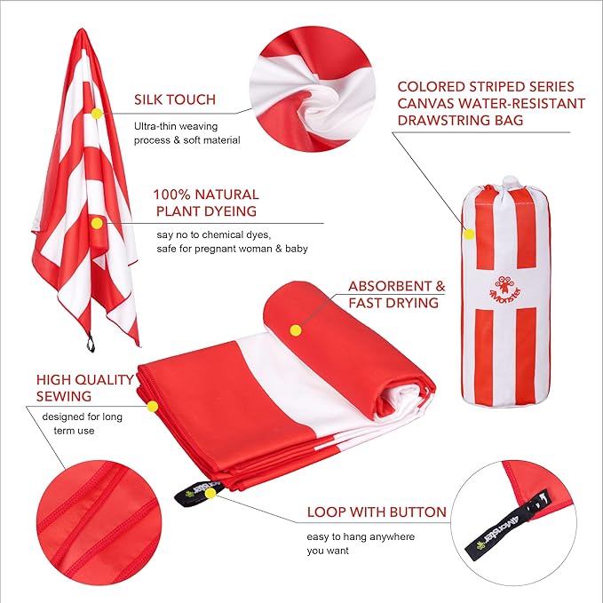 - 【100% Sand Free】Designed for beaches and camping,engineered to repel sand, ensuring that sand grains won't stick to the towel. After use, simply shake off the towel, and sand will easily fall off, making it hassle-free to clean.