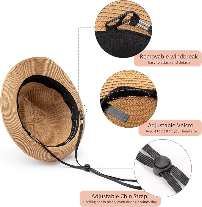 - 【Material】:DRESHOW sun protection hat is made of breathable high quality Paper Straw which makes it lightweight and flexible. A built-in sweatband keeps you cooler while wearing it.