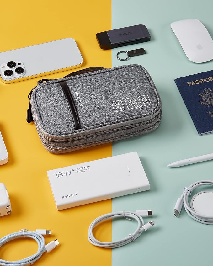 - - Considerate Design:The electronic travel organizer has 2 layers interior compartment with enough space to cell phone, power bank, battery case, adapter, charger, USB cable,mouse,apple pencil,flash drive, tech and other accessories;outer handy pocket storage space for passport/ticket/card/daily necessarily.