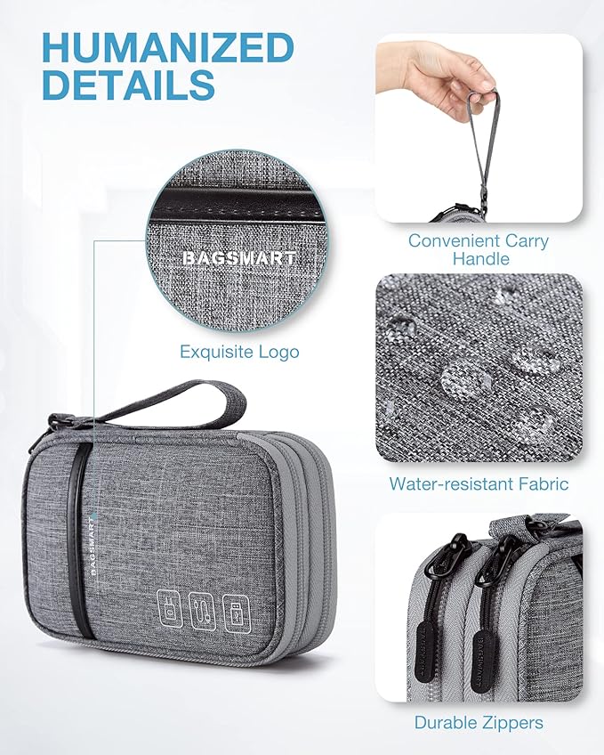 BAGSMART Electronic Cord Cable Organizer Travel Bag Case, Double Layers Tech Electronic Bag, Essentials for Charger, Cable, Phone, Flash drive, Gray