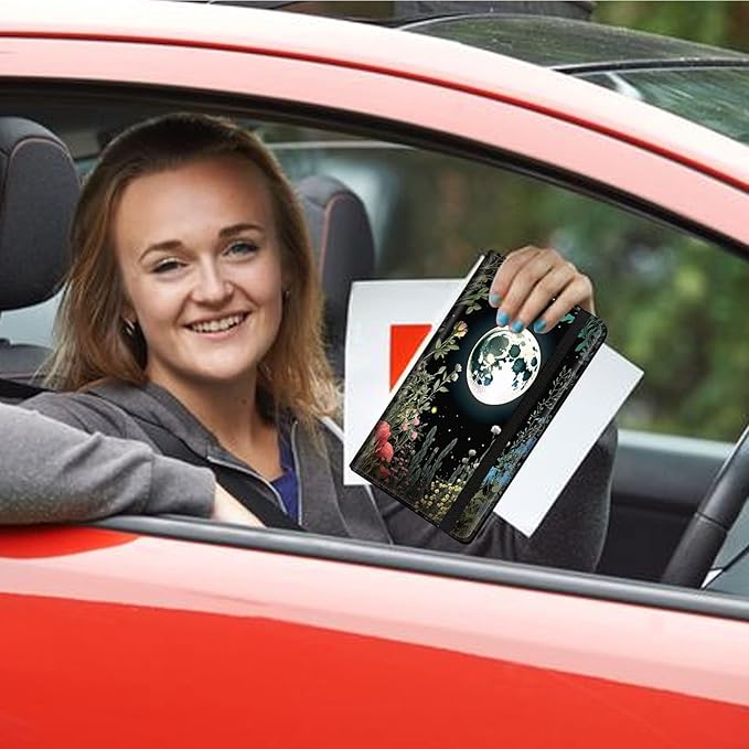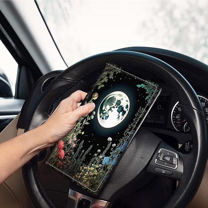 Car Registration and Insurance Holder, Leather Car Glove Box Organizer, Cool Car Accessories for ID, Driver's License Cards & Essential Document,Men&Women,business cards,Grass Flowers Moon Star