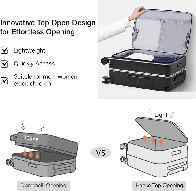 - Revolutionary Top Opening Trunk Design: Unlike traditional luggage, our Top Opening Luggage functions as true Trunk Luggage. Access contents vertically without floor space – perfect for tight airport queues or car trunks. Doubles as a sturdy storage solution at home
