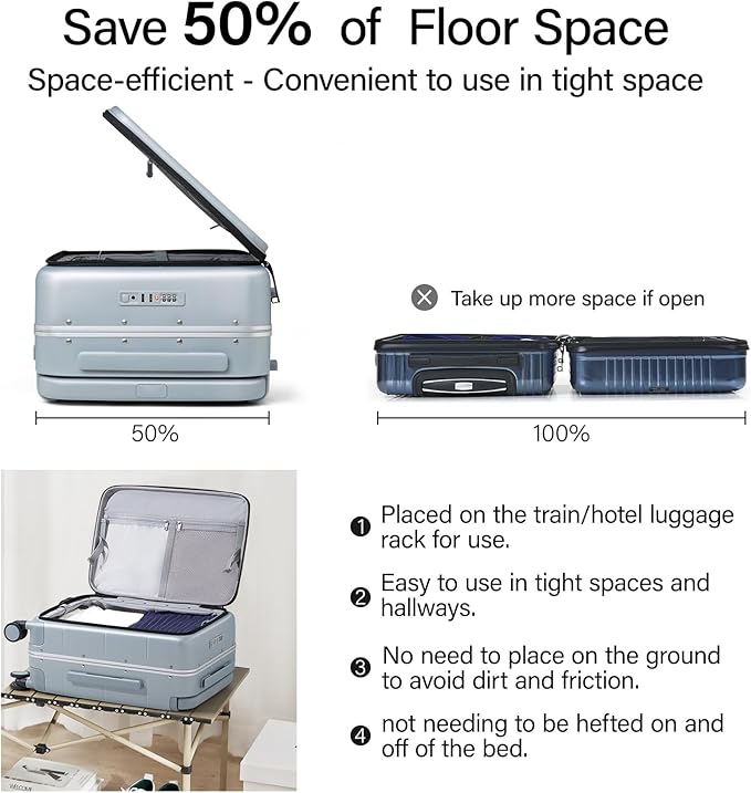 - Revolutionary Top Opening Trunk Design: Unlike traditional luggage, our Top Opening Luggage functions as true Trunk Luggage. Access contents vertically without floor space – perfect for tight airport queues or car trunks. Doubles as a sturdy storage solution at home