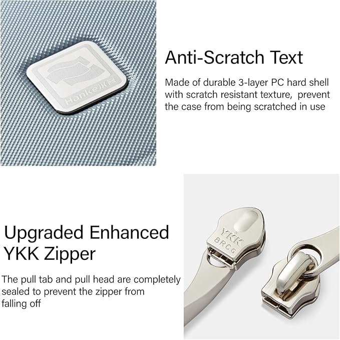 - Aluminum Frame & 3-Layer 100% PC Hard Shell: Hanke wide handle luggage reinforce with built-in aluminum alloy frame (non-removable) to resist impacts.The shatterproof material prevents cracking. Lightweight yet 30% tougher than standard carry-on suitcase materials – perfect for rough baggage handling