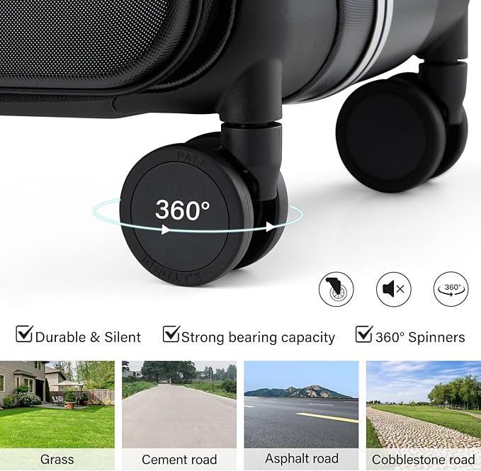 - Premium Travel-Tested Components: Features silent 360° spinner wheels for cobblestones/carpets, heavy-duty explosion-proof zippers, and TSA-approved locks. The ergonomic multi-stage handle ensures comfortable maneuverability across all terrains