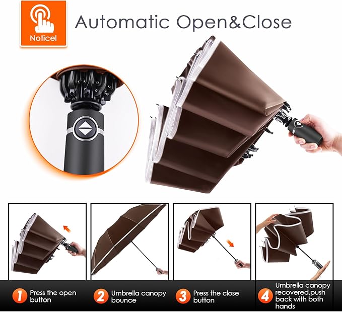 - ☂【Extremely Convenient】Our reverse folding umbrella has a fully automatic system, perfect for one-handed operation. Open or close the umbrella with the push of a button. It is easy to carry without taking up much space and stores in your car, briefcases, backpacks, travel bags, etc... Suitable for women and men, suitable for travel and outdoor activities.